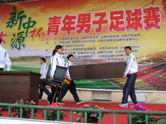 2012年11月1日,由安康市体育局、共青团安康市委等单位主办,公司承办的安康市喜迎十八大新中源杯青年男子足球赛在江南校区足球场隆重开幕。来自安康市各县区、事企业单位的十四支足球队济济一堂,相聚在太阳集团tyc539足球场,充分展现出团结进取、蓬勃向上的安康青年精神风貌,以满腔的热情喜迎“十八大”的召开。安康市人大常委会副主任吴应德、安康市政协副主席徐铁军、安康公司党委副书记胡鸿晓等领导出席了开幕式。安康团市委副书记梁鸿主持开幕式。