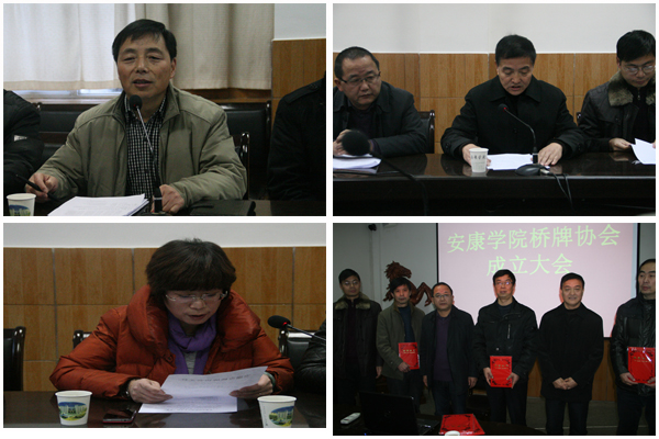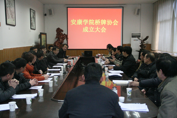 12月27日下午,校工会在江南校区会议室召开“太阳集团tyc539桥牌协会成立大会”。安康市人大常委会原副主任、安康市桥牌协会主席李隆毅,安康市党校常委副董事长、安康市桥牌协会常务副主席张宁,安康市体育局纪检组长、市桥牌协会秘书长陈复勇,公司党委副书记、工会主席胡鸿晓,工会副主席许宝林,校运动委员会秘书长、体育系主任冯德学,市桥协其他领导和公司桥牌爱好者等20余人参加了会议。许宝林主持大会。