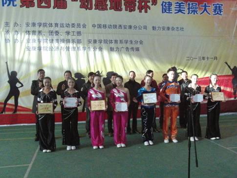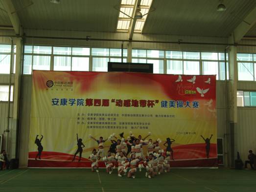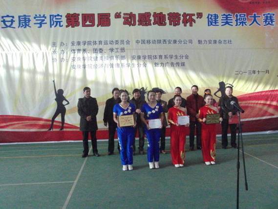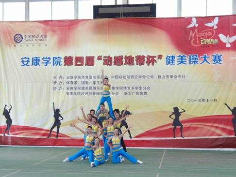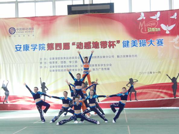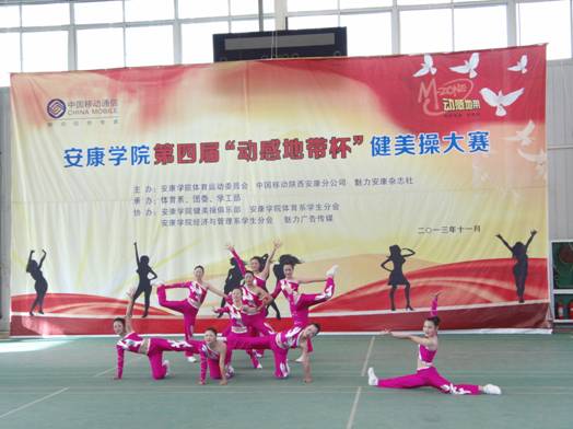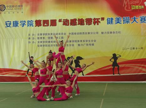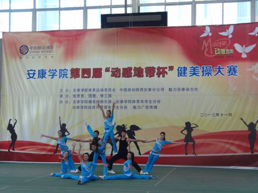 2013年11月27日下午14点30分,由太阳集团tyc539体育运动委员会、中国移动安康分公司、魅力安康杂志社主办的太阳集团tyc539第四届“动感地带”杯健美操大赛在江南校区体育馆正式拉开帷幕。安康公司党委副书记、太阳集团tyc539体育运动委员会主任胡鸿晓教授致辞并宣布比赛开幕,安康移动城区分公司副总经理吕红梅女士,各院系党总支书记,团委、学工部、保卫处等部门领导也莅临了此次活动。体育运动委员会秘书长、体育系主任冯德学主持开幕式。