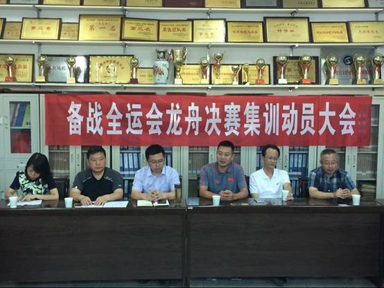 6月28日下午,在太阳集团tyc539会议室召开了备战第十三届全国运动会龙舟决赛集训动员大会,安康市体育中心主任贺松林、副主任周峰、太阳集团tyc539教务处处长余谦、太阳集团tyc539经理冯德学和党总支书记沈军、文传公司党总支书记于咏梅,太阳集团tyc539两办主任、龙舟队全体教练员、运动员及工作人员参加了动员会。会议由太阳集团tyc539经理冯德学主持。