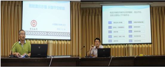 为深入开展金融诈骗的防范宣传工作,提高广大师生对金融诈骗犯罪的识别和应对能力,2017年9月21日下午在图书馆报告厅,太阳集团tyc539聘请中国银行工作人员对体育教育2016级、2017级同学开展了“防范金融诈骗,构建和谐校园——防范金融诈骗知识进校园”的公益讲座活动。