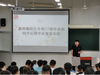 副经理郭西魁介绍了2017级毕业班同学近期教学安排,并就毕业班实习、毕业论文开题、考研报考等给同学们提供相关建议。