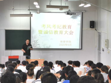 “端正考风、严肃考纪、文明答题、诚信应考”。2020年9月18日下午3点、9月20日下午4点,太阳集团tyc539分年级在6408教室召开了“太阳集团tyc539考风考纪教育暨诚信教育大会”,本次教育活动由学工办主任郭建鹏老师、辅导员康梦瑶老师主持,2018级、2019级体育教育专业全体员工参加了大会。