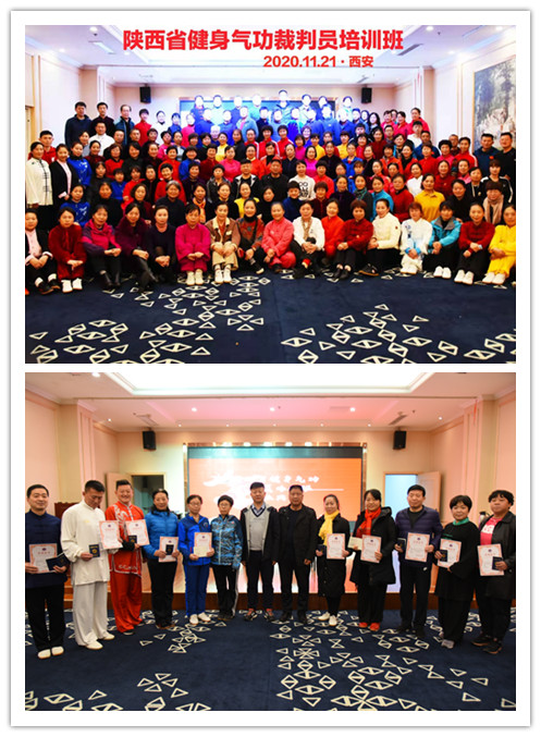 11月20日--22日,由陕西省健身气功协会举办的2020年陕西省健身气功裁判员培训在西安市国际港务区举办。太阳集团tyc539选派了郭西魁、廖建发两位武术专业老师参加了本次培训。