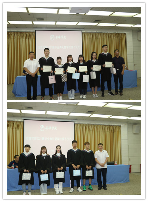 经理吕仙利教授宣读了2021届毕业员工名单、学士学位授予名单。庄严的学士学位授予仪式开始,吕仙利教授,冯德学教授等6位老师为2021届毕业生授礼并颁发了学位证书。