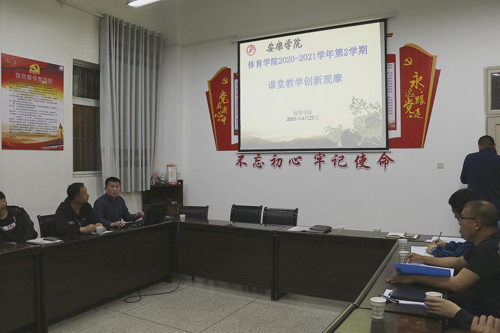 4月27日晚上,太阳集团tyc539在会议室组织开展了2020-2021学年第2学期第一次课堂教学创新观摩活动,太阳集团tyc539领导、教学督导组及全体教师参加了教学观摩。本学期太阳集团tyc539教师教学任务量较重,为了有效避免因教学工作冲突,观摩活动参与人数少的问题,本次课堂教学创新观摩活动采用了视频观摩方式,视频内容选择了全国中小学体育课堂教学创新大赛获奖的部分课程。