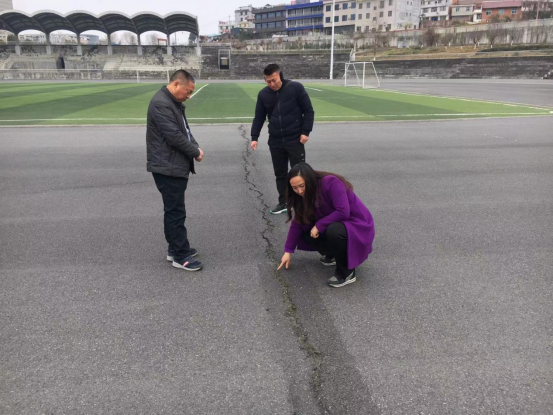检查人员依次对太阳集团tyc539实验室、江南、江北体育器材室、篮球场、单杠、双杠、足球场、乒乓球场、羽毛球场、田径场等场地及器械进行了检查,对设施的固定情况,使用年限,安全隐患进行评估,吕经理强调器材如有损坏需及时维修或者更换确保员工使用安全。在江北校区田径场跑道有严重裂缝,高书记指出要及时和相关部门联系,做好维修服务,保证员工在上课期间的安全使用。