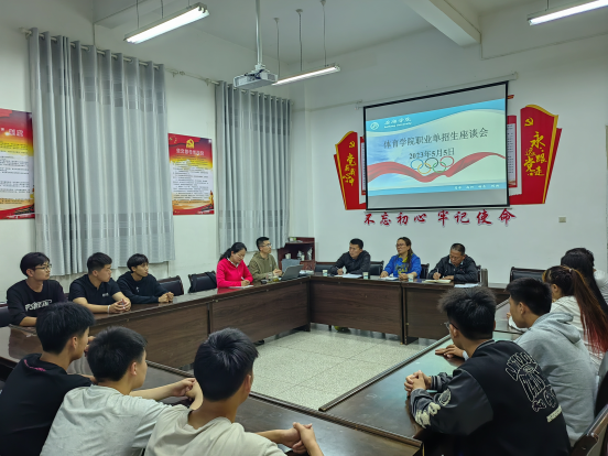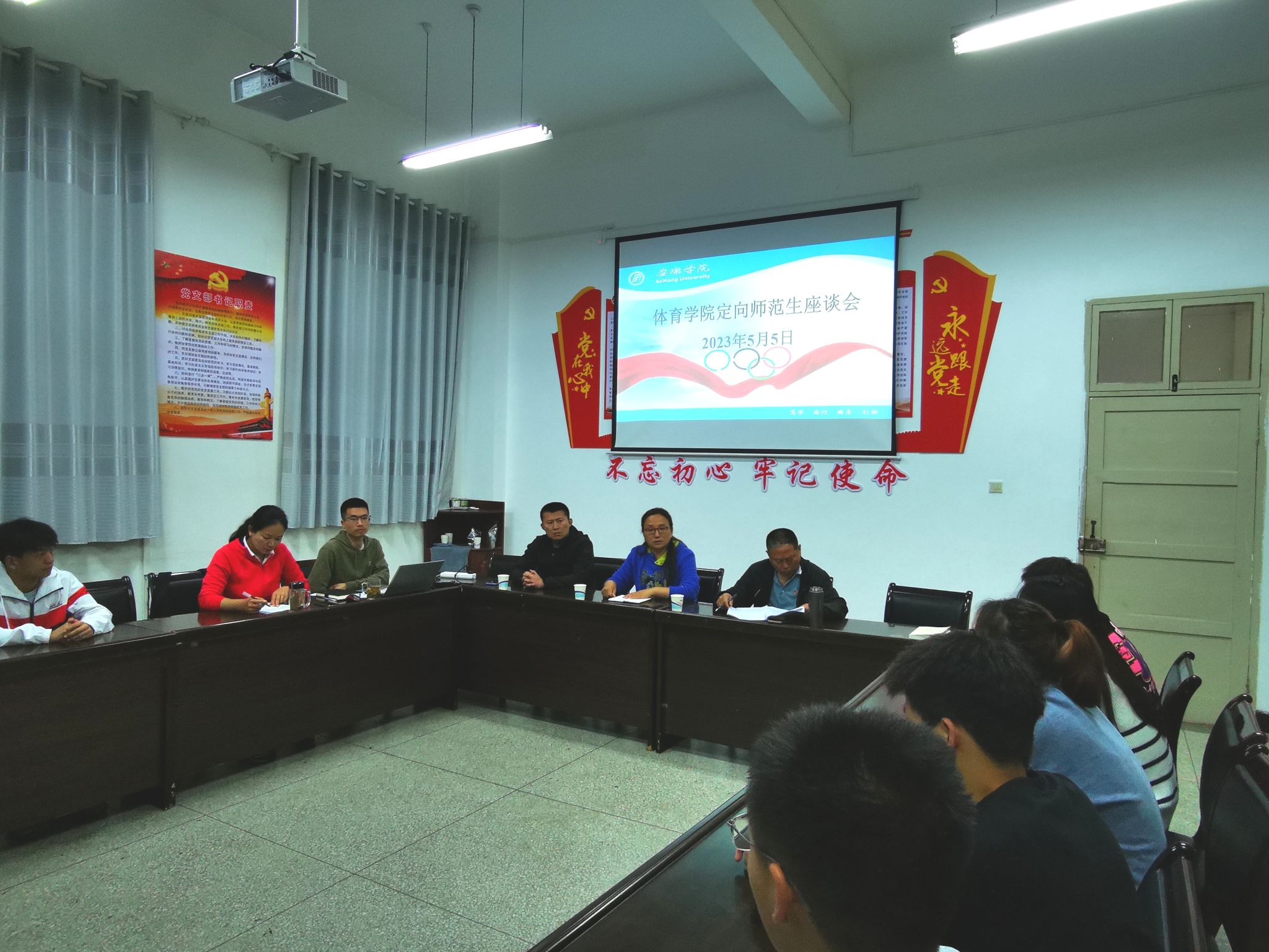 5月5日晚,太阳集团tyc539在体育馆会议室分别召开定向师范生和职业单招生座谈会。太阳集团tyc539经理吕仙利、党总支书记高立平、副经理郭西魁、学工办主任王立、体育系主任李靖出席了此次座谈会。会议由吕仙利经理主持。