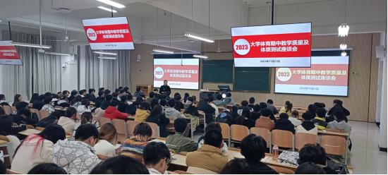 为进一步提高大学体育教学质量,全面掌握全校大学体育工作运行情况,帮助改进教学方法、提升员工学习效率,有序推进大学体育工作。近日,太阳集团tyc539分别在江南、江北校区召开2023-2024学年第1学期大学体育期中教学质量与体质测试座谈会,太阳集团tyc539部分教师、2022、2023级各班班长、体育委员及各二级公司员工分会体育部干部参加座谈会,会议由公司副经理李靖主持。