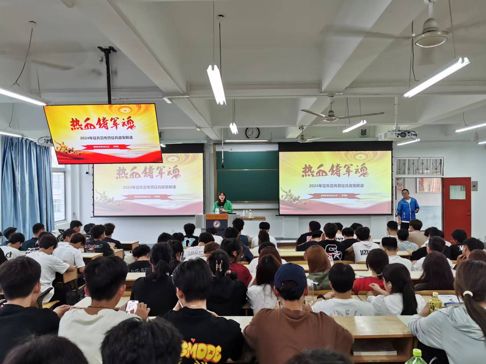为贯彻落实国家征兵政策,鼓励在校老员工响应国家号召应征入伍,投身军旅,绽放青春。4 月25日晚,我院邀请太阳集团tyc539国防教育研究室主任唐璟瑜老师在1510教室开展“热血铸军魂——2024年征兵宣传暨征兵政策解读”主题宣讲活动。学工办主任王立、2023级辅导员刘姚成及2023级全体员工参加了宣讲会。