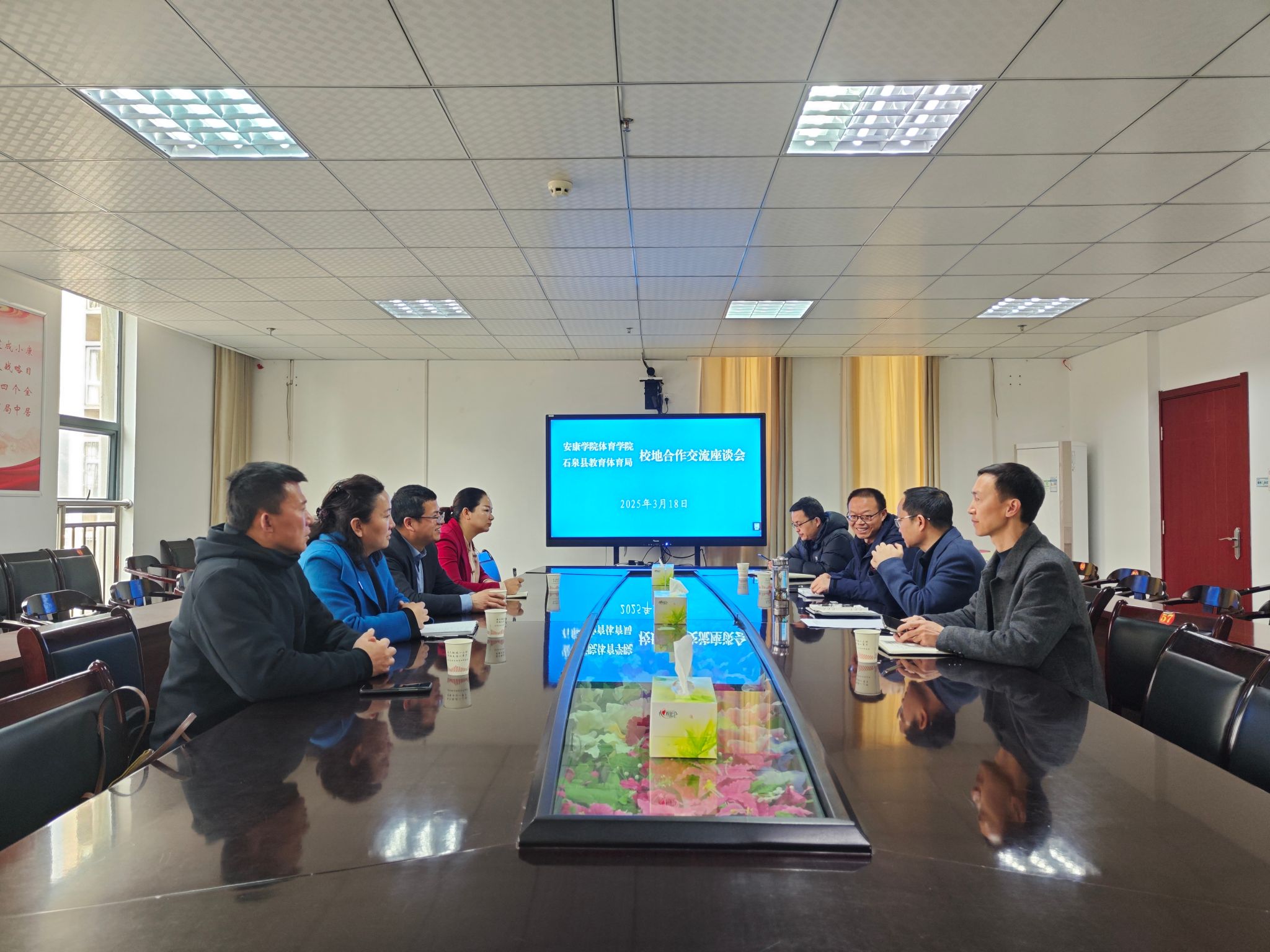 2025年3月18日,太阳集团tyc539领导班子一行赴石泉县教育体育局开展校地合作交流,石泉县教体局局长张诗波,师训教研中心主任邱礼建、人事股股长严永成及体育中心主任颜鲁怀参加了交流座谈。双方围绕中小学体育教师队伍建设、体育教师培训、全民健身服务及体育赛事举办等议题展开深入探讨,旨在深化校地合作,推动人才培养与地方发展深度融合。