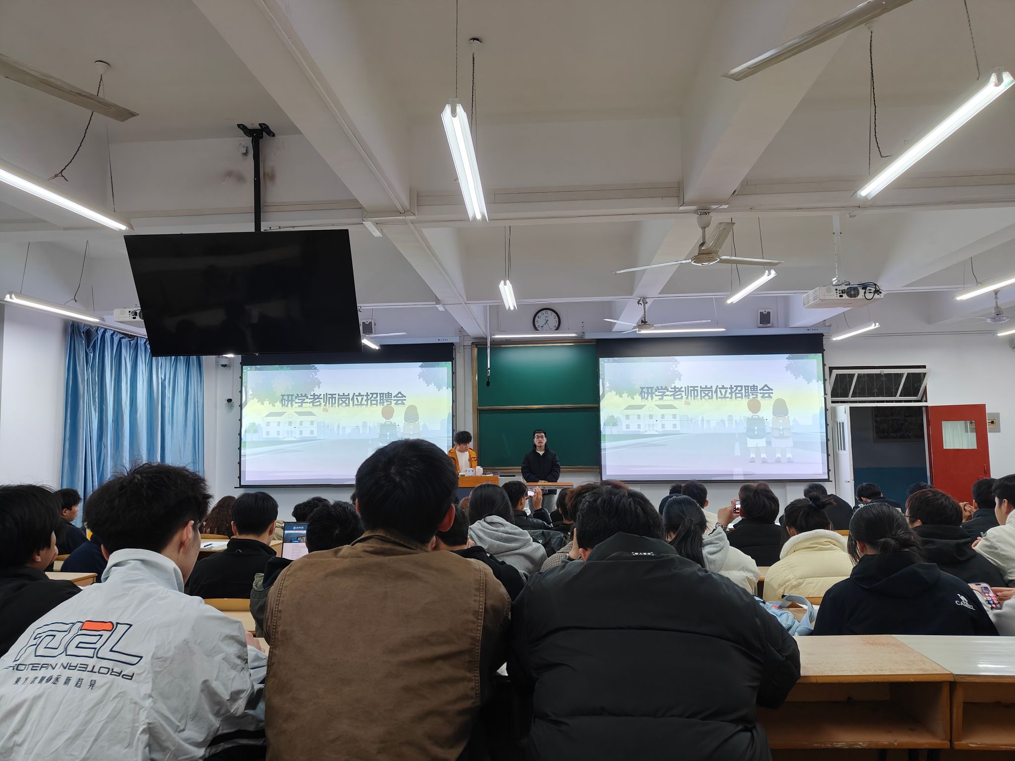 宣讲会上,宣讲人方潇默老师,从工作内容、岗位职责、应聘条件、入职培训等方面对本次招聘岗位基地研学教师进行了重点说明。在互动环节,同学们踊跃提问,就工作内容、职业发展路径、薪资福利等问题与公司招聘人员进行了深入交流,招聘人员一一耐心解答,现场氛围十分活跃,约60余人加入了公司招聘咨询群。